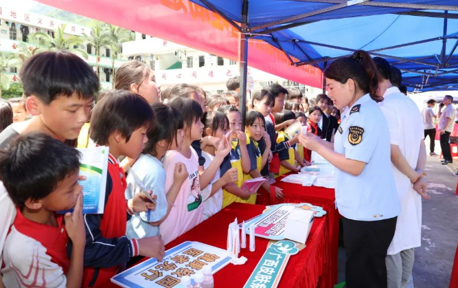 918博天堂办公室、化妆品监管处,河池检查分局,自治区药品不良反应监测中心,河池市、大化县市场监管局,自治区皮肤病医院,百马乡中心小学,广西英和药业有限公司负责人及代表参加活动。(程奇 蓝必贤)